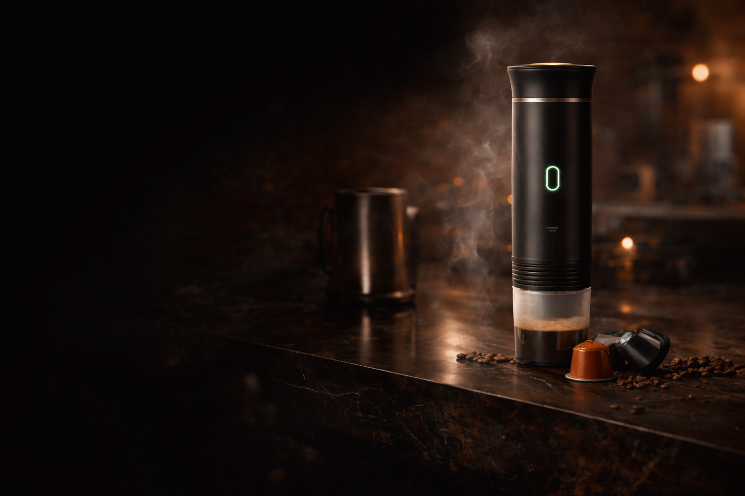 Die „Hochleistungs“-Kaffeemaschine mit Akku, die Ihnen überall Kaffee in Barista-Qualität bietet.